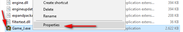 Bước 1: Vào thư mục game chuột phải và tập tin Game.exe và chọn Property.
